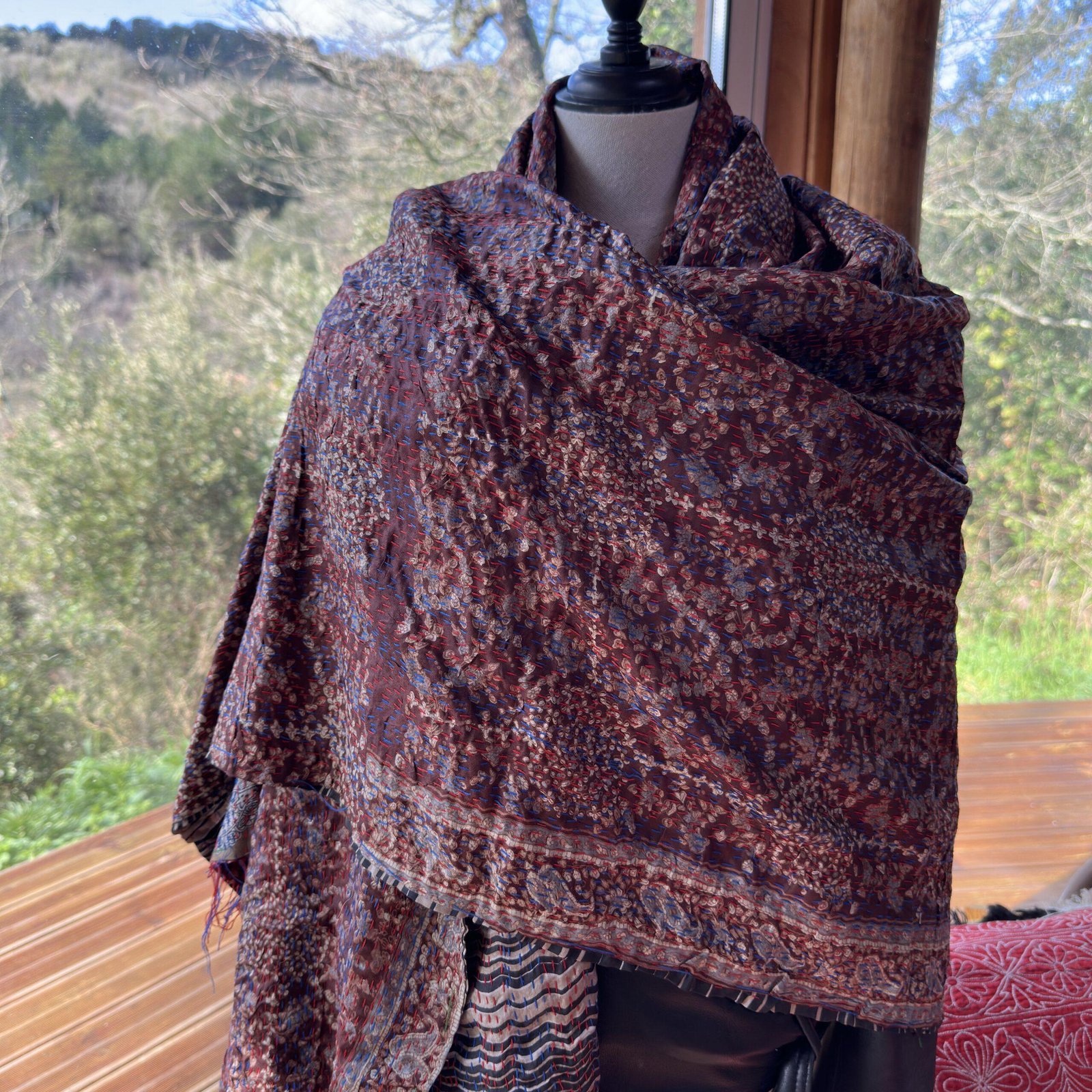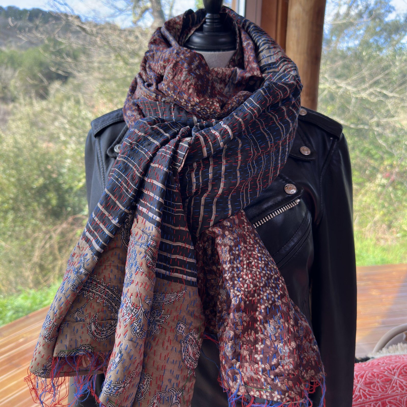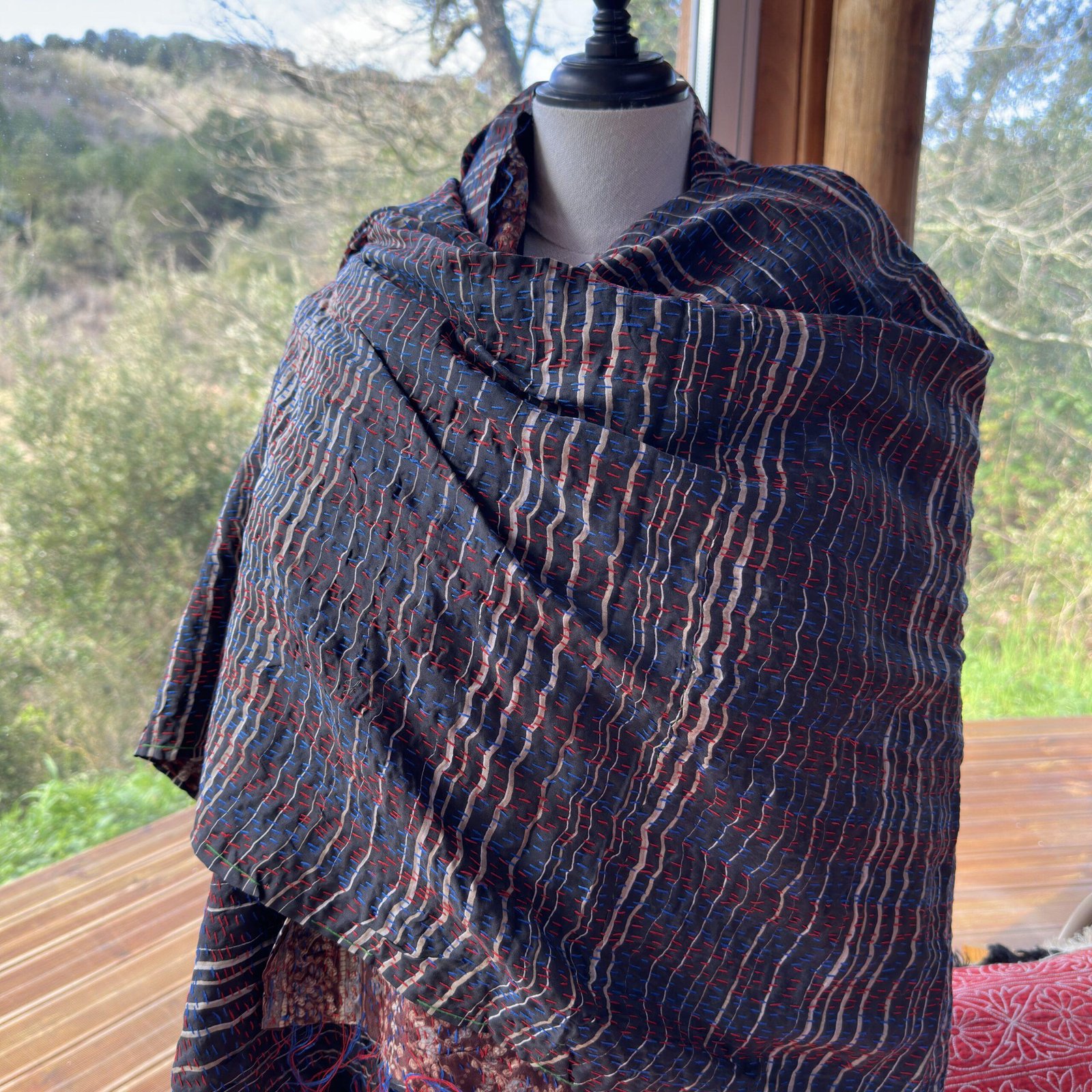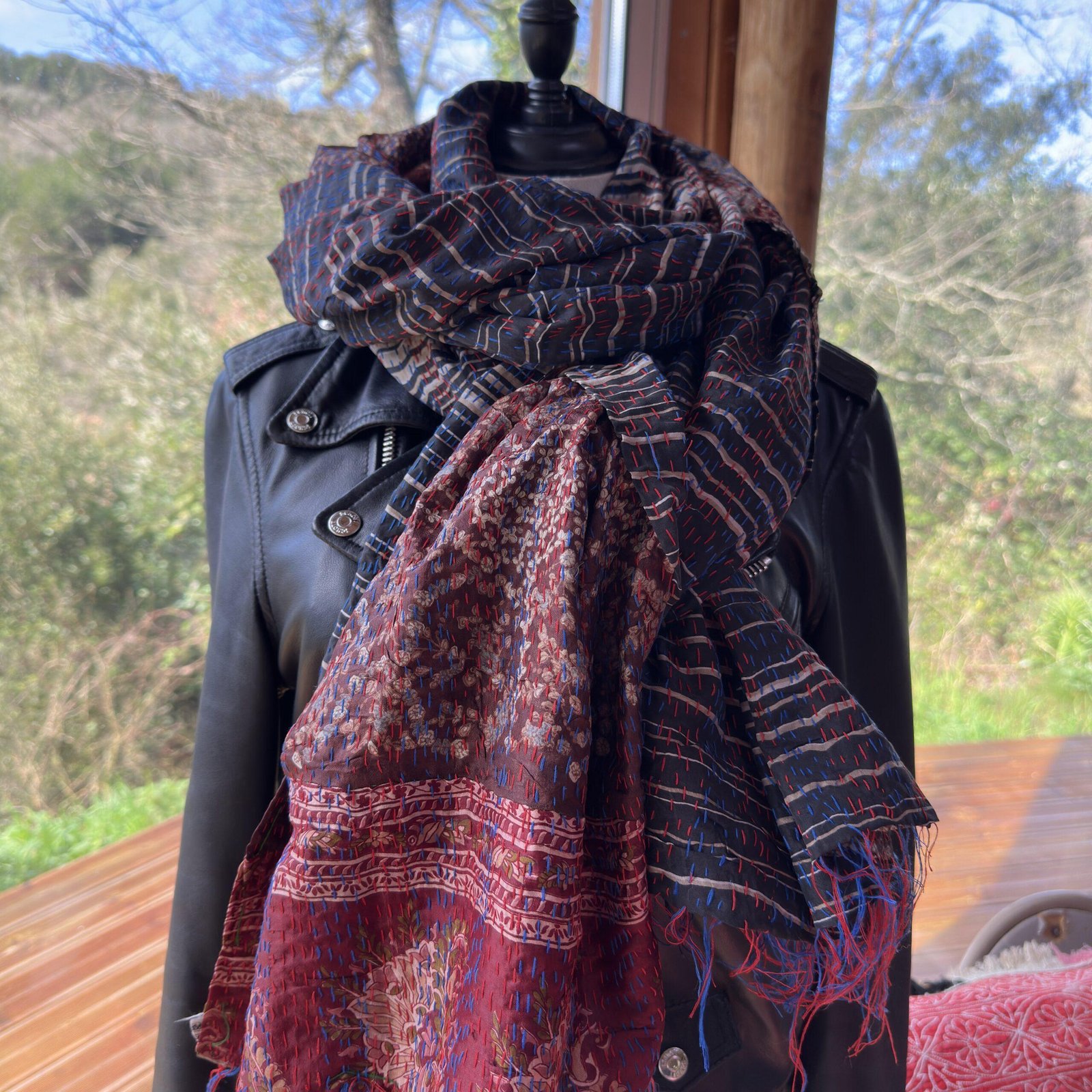 Étole Kantha réversible. Reversible Kantha stole